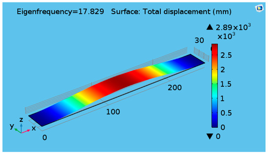 The Strouhal number is assumed to be constant for a broad range of Reynolds numbers and is approximated as 0.2 for cylindrical bluff bodies [30] and 0.15 for flat plate [27]. In this study, the fluttering belt is assumed as a flat plate. For the airflow velocity of 3 m/s and characteristic length of 25 mm, the vortex shedding frequency was found to be 18 Hz; this result is near to the first mode of the natural frequency.
