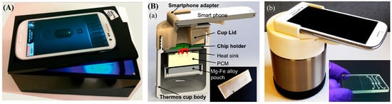 - Liao, S.; Peng, J.; Mauk, M.; Awasthi, S. Smart cup: A minimally-instrumented, smartphone-based point-of-care molecular diagnostic device. Sens. Actuators B Chem. 2016, 229, 232–238. [Google Scholar] [CrossRef] [PubMed]