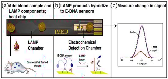 - Patterson, A.S.; Heithoff, D.M.; Ferguson, B.S.; Soh, H.T.; Mahan, M.J.; Plaxco, K.W. Microfluidic chip-based detection and intraspecies strain discrimination of Salmonella serovars derived from whole blood of septic mice. Appl. Environ. Microbiol. 2013, 79, 2302–2311. [Google Scholar] [CrossRef] [PubMed]