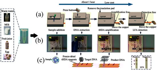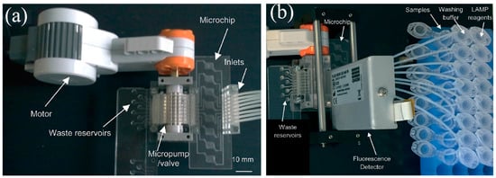 - Wolff, A.; Sun, Y.; Quyen, T.; Hung, T.; Chin, W. A lab-on-a-chip system with integrated sample preparation and loop-mediated isothermal amplification for rapid and quantitative detection of Salmonella spp. in food samples Lab on a Chip. Lab Chip 2015, 15, 1898–1904. [Google Scholar]