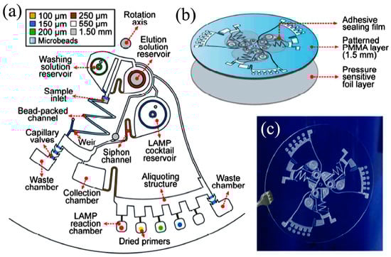- Sayad, A.A.; Ibrahim, F.; Uddin, S.M.; Pei, K.X.; Mohktar, M.S.; Madou, M.; Thong, K.L. A microfluidic lab-on-a-disc integrated loop mediated isothermal amplification for foodborne pathogen detection. Sens. Actuators B Chem. 2016, 227, 600–609. [Google Scholar] [CrossRef]