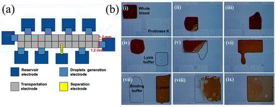 - Hung, P.-Y.; Jiang, P.-S.; Lee, E.-F.; Fan, S.-K.; Lu, Y.-W. Genomic DNA extraction from whole blood using a digital microfluidic (DMF) platform with magnetic beads. Microsyst. Technol. 2015, 23, 313–320. [Google Scholar] [CrossRef]