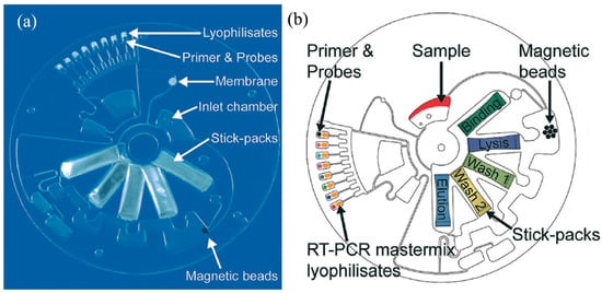 - Stumpf, F.; Schwemmer, F.; Hutzenlaub, T.; Baumann, D.; Strohmeier, O.; Dingemanns, G.; Simons, G.; Sager, C.; Plobner, L.; von Stetten, F.; et al. LabDisk with complete reagent prestorage for sample-to-answer nucleic acid based detection of respiratory pathogens verified with influenza A H3N2 virus. Lab Chip 2016, 16, 199–207. [Google Scholar] [CrossRef] [PubMed]