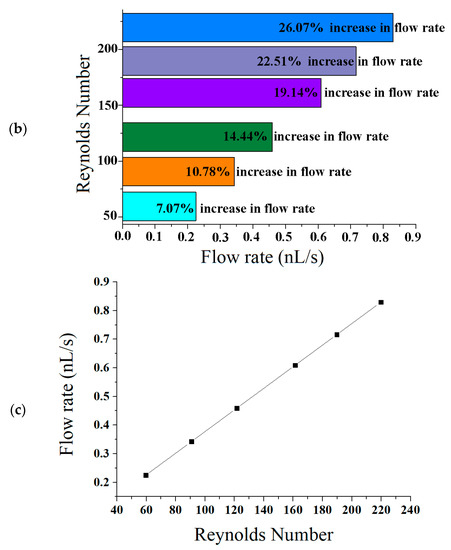 5.1. Reynolds Number, Pressure Difference, and Flow Rate