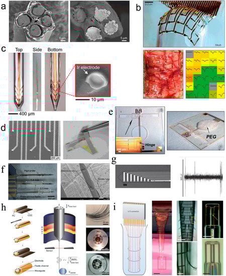 - Wang, M.H.; Nikaido, K.; Kim, Y.; Ji, B.W.; Tian, H.C.; Kang, X.Y.; Kang, X.Y.; Yang, C.S.; Yang, B.; Chen, X.; Wang, X.L.; et al. Flexible cylindrical neural probe with graphene enhanced conductive polymer for multi-mode BCI applications. In Proceedings of the 2017 29th IEEE International Conference on Micro Electro Mechanical Systems (Mems), Las Vegas, NV, USA, 22–26 January 2017; pp. 502–505. [Google Scholar]