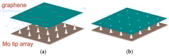- Zhu, N.L.; Chen, J.; Cole, M.T.; Milne, W.I. Anomalous improved electron field emission from hybridised graphene on Mo tip arrays. In Proceedings of the 2017 19th International Conference on Solid-State Sensors, Actuators and Microsystems (TRANSDUCERS), Kaohsiung, Taiwan, 18–22 June 2017. [Google Scholar] [CrossRef]