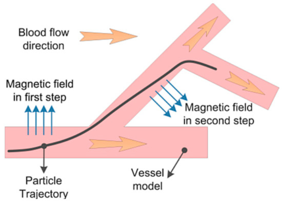 where, is permeability of free space, M is net magnetic polarization, H is a magnetic intensity, and is the gradient of the magnetic intensity. Based on Equations (1)–(4), we can get particle trajectory equation as follows;