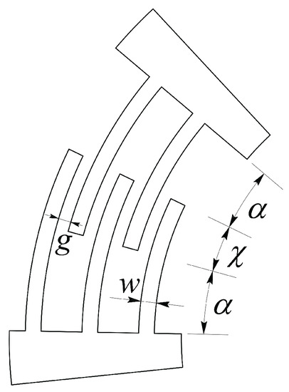 - , and are the overlap angle, gap and width of the comb drive fingers;