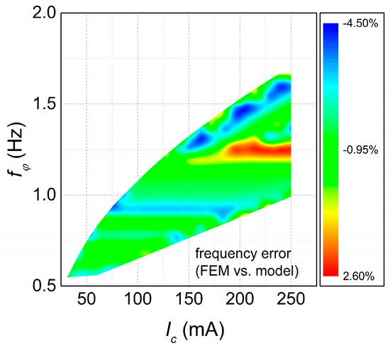 Comparable agreement existed also for the resonance frequency, with an average relative error between the FEM value and the MO value of around 1.22% and a standard deviation of 1.48%. While in this case the correlation is less clear, a part of this dispersion can be also attributed to the rounding of . The relative error on the resonance frequency between the FEM and the MO value is shown in Figure 6.