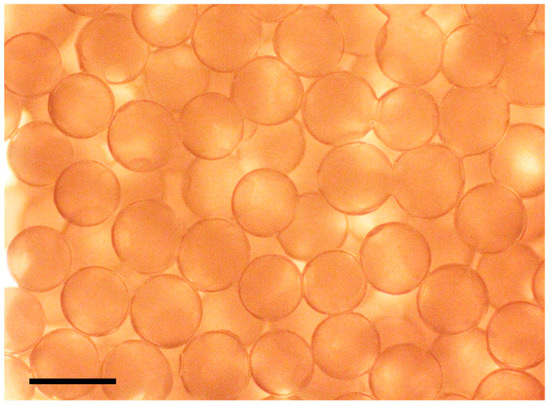 Micrograph of the produced gelatin microspheres using the co-flow microfluidic device. Scale bar, 400 μm.