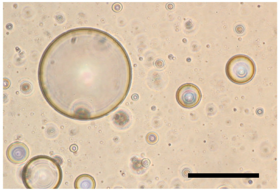 Micrograph of the produced gelatin microspheres using emulsification method. Scale bar, 50 μm.