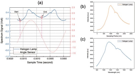 The final spectrum I ( λ ) can be calculated by I ( t ) and λ ( t ) , as shown in Figure 3c.