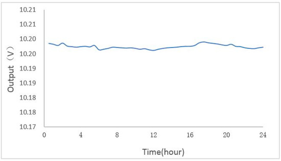 The accelerometer is placed at the zero acceleration position, and the output value is measured every 0.5 h. The output value of the accelerometer is recorded in 24 h to calculate its bias stability shown in Figure 16; the result shows that the zero stability reaches 0.18 mg in 24 h.