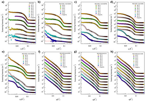 Figure 3c–e). Above 35 °C, the SANS intensity of the P65-5mS mixture with the 5mS concentration of 0.0375~0.0625% are very diverse depending on 5mS concentration (