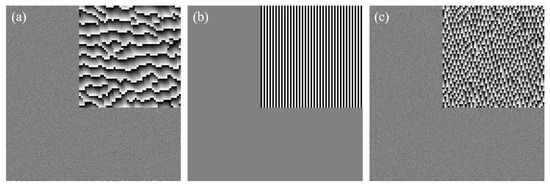 The simulation of the phase distribution: (a) the phase distribution of the DOE; (b) the phase distribution of the grating; and (c) the final composite phase distribution of CDOE.