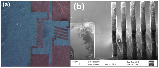 High-aspect-ratio TSVs applied in electronic devices are light, thin, and small, having an important role in MEMS (micro-electro-mechanical system) devices, including MEMS sensors, 3D inductors, micro-motors, and micro-converters [5,6,7]. Since the development trend of miniaturization and improving efficiency for current electric products, increasing TSVs conduction in a smaller area, using high-density TSVs, is necessary [8,9]. High-density TSVs help reduce the size of MEMS devices and increase power density, promoting the development and performance improvement of MEMS devices [10,11].