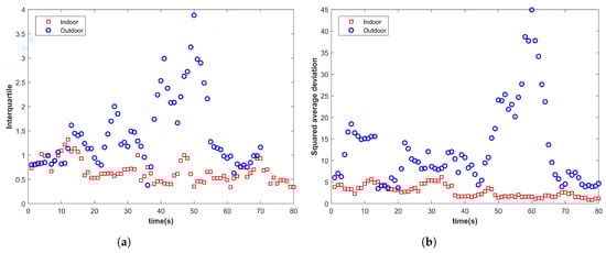Magnetic features for the indoor and outdoor environment. (a) Inter-quartile; (b) Squared average deviation.