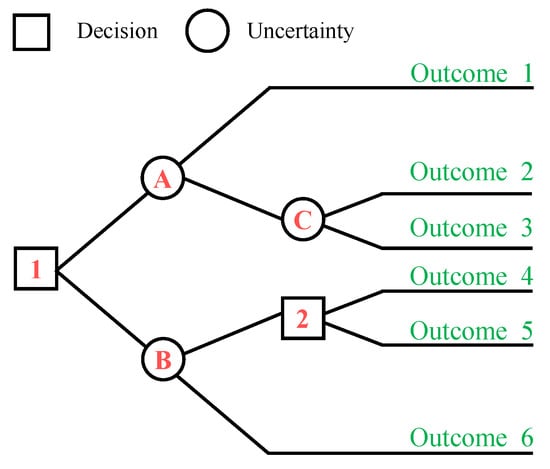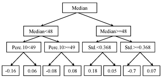K represents the total number of splits, which is set to four in the current study. The tree-pruning step is performed as well in order to reduce the size of the tree. Decision trees are favorable due to many reasons. First, they are non-parametric and do not require any prior assumptions about the data. Second, they are computationally inexpensive and easy to interpret, especially in the case of small trees. Last but not least, the redundant attributes in the data do not affect the accuracy of decision trees. A typical decision tree is shown in Figure 4.