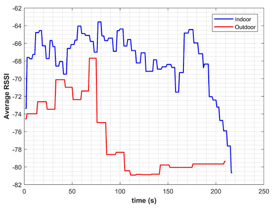 The performance of GPS was very poor and was mainly affected when close to building entrances. It continued to report fixes, as well, when a transition was made from outdoor to the indoor environment. Additionally, it required a longer time to scan GPS signals. The performance of Wi-Fi alone was poor, as well, and it achieved an average accuracy of 46.82%. We used the number of scanned APs and average RSSI measure to discriminate IO environments. We found that Wi-Fi was not practically reliable and exhibited a similar attitude in many indoor and outdoor cases. For example, the averaged RSSI for the indoor and outdoor environment shown in Figure 23 clearly indicates that a clear threshold on RSSI was not very practical for the given scenario and so for the number of scanned APs.