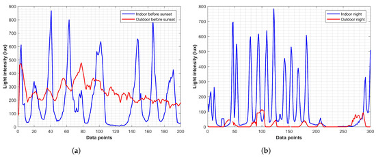(a) Light intensity before sunset and (b) light intensity during the night.