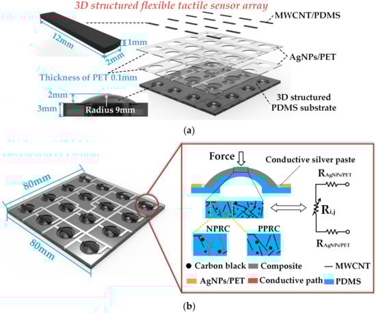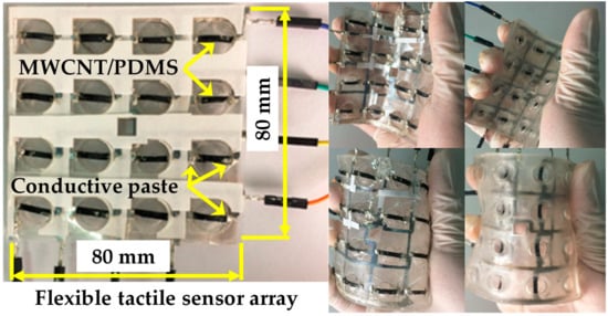 - Azkar Ul Hasan, S.; Jung, Y.; Kim, S.; Jung, C.L.; Oh, S.; Kim, J.; Lim, H. A sensitivity enhanced MWCNT/PDMS tactile sensor using micropillars and low energy Ar(+) ion beam treatment. Sensors 2016, 16, 93. [Google Scholar] [CrossRef] [PubMed]