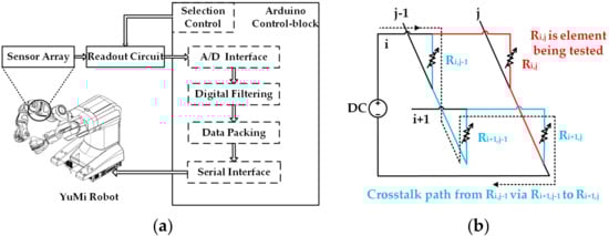- Wu, J.; He, S.; Li, J.; Song, A. Cable crosstalk suppression with two-wire voltage feedback method for resistive sensor array. Sensors 2016, 16, 253. [Google Scholar] [CrossRef] [PubMed]