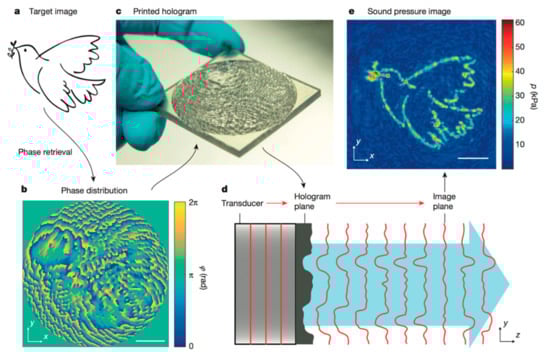 - Melde, K.; Mark, A.G.; Qiu, T.; Fischer, P. Holograms for acoustics. Nature 2016, 537, 518–522. [Google Scholar] [CrossRef] [PubMed]