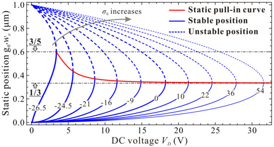 Substituting Equation (13) into Equation (11), one can derive that the static pull-in position can be decided by the following equation
