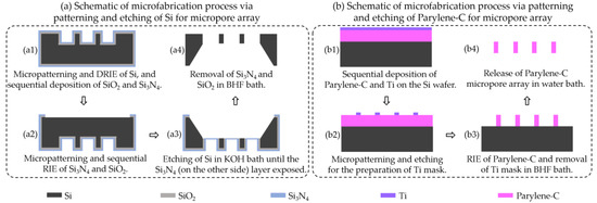 2.2. Micropatterning and Etching of Parylene-C for Micropore Array Preparation