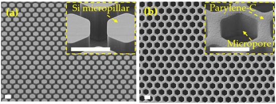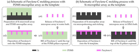 2.4. Parylene-C Molding with Silicon Micropillar Array as the Template for Micropore Array Preparation