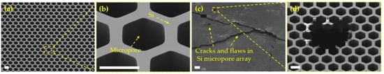 3.1. Micropore Arrays Obtained from Micropatterning and Etching of Silicon
