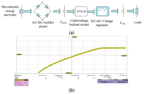 Figure 7. (a) The management circuit for piezoelectric energy harvester; (b) Experiment curve of charging process.