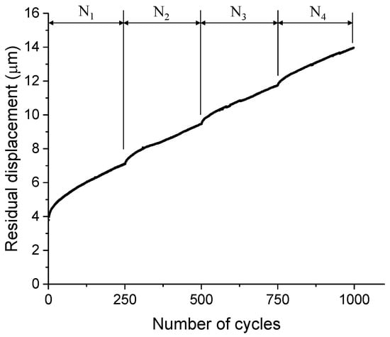 A typical curve for the development of residual displacement (N1, N2, N3, and N4 denote the four load blocks).