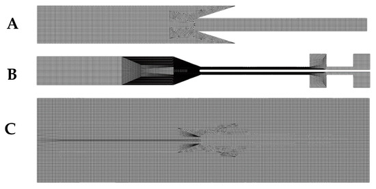 The meshing system for (A) the encapsulation layer, (B) the conductive path, and (C) the substrate.