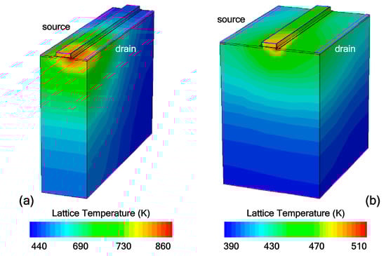 - Shrivastava, M.; Agrawal, M.; Mahajan, S.; Gossner, H.; Schulz, T.; Kumar Sharma, D.; Rao, V.P. Physical insight toward heat transport and an improved electrothermal modeling framework for FinFET architectures. IEEE Trans. Electron Devices 2012, 59, 1353–1363. [Google Scholar] [CrossRef]