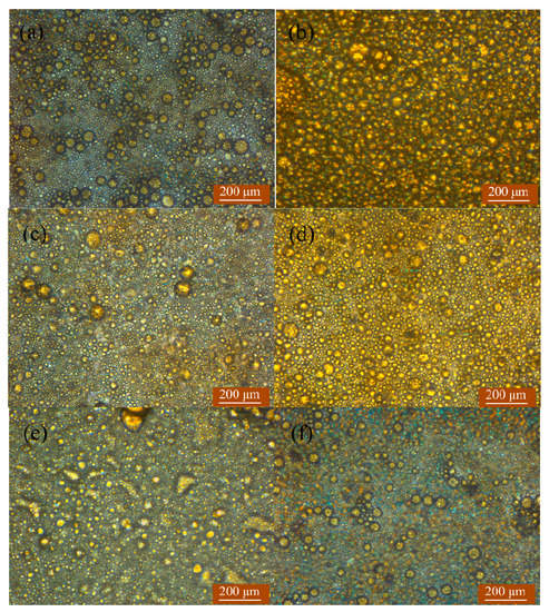 Table 3. Fractions (Ry) of yellow area of oil phase in the total area of photomicrographs captured in Figure 5.