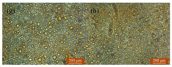 Photomicrographs in Figure 5 indicated that for all four experimental conditions, the area fractions of oil phase dyed yellow at the position of 65 mm were much larger than those at 37 mm, the exact value of which are shown in Table 3. Figure 5a,b particularly clarified the phase separation occurring in the micro-channel.