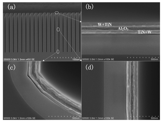 - Spahr, H.; Nowak, C.; Hirschberg, F.; Reinker, J. Enhancement of the maximum energy density in atomic layer deposited oxide based thin film capacitors. Appl. Phys. Lett. 2013, 103, 042907. [Google Scholar] [CrossRef]