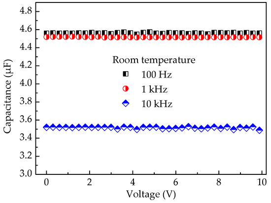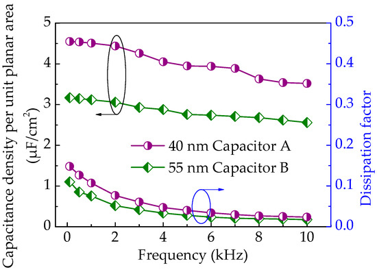- Bertaud, T.; Blonkowski, S.; Bermond, C.; Vallée, C.; Gonon, P. Frequency effect on voltage linearity of ZrO2-based RF metal-insulator-metal capacitors. IEEE Electron Device Lett. 2010, 31, 114–116. [Google Scholar] [CrossRef]