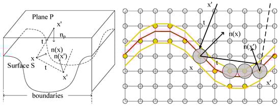 We can solve Equation (6) of each grid nodes by differential scheme Equation (7) with “entropy-satisfying” approximation to the gradient Equation (8). The zero level set surface can be extracted within :