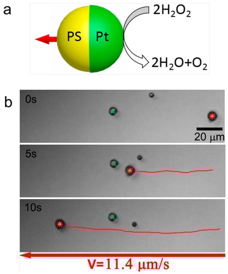 - Gao, W.; Pei, A.; Dong, R.; Wang, J. Catalytic iridium-based Janus micromotors powered by ultralow levels of chemical fuels. J. Am. Chem. Soc. 2014, 136, 2276–2279. [Google Scholar] [CrossRef] [PubMed]
