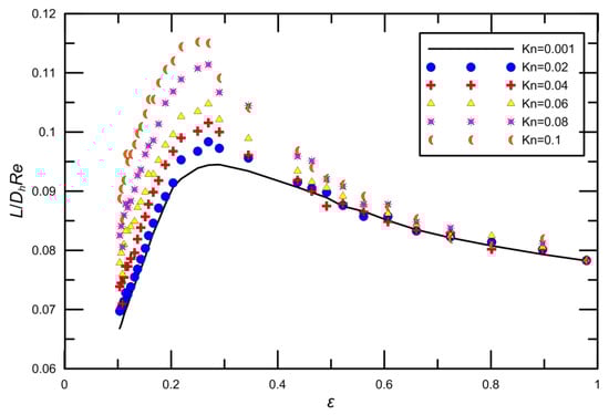 For the slip flow entrance region problem, the available data are given by the approximately analytical solutions presented by Duan and Muzychka [45], where they presented a comprehensive review of laminar flow in ducts of various cross-sections, including rectangular channels. We can obtain the apparent friction factor and Reynolds number product from Duan and Muzychka [45]: