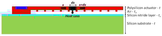- Hickey, R.; Kujath, M.; Hubbard, T. Heat transfer analysis and optimization of two-beam microelectromechanical thermal actuators. J. Vac. Sci. Technol. Vac. Surf. Films 2002, 20, 971–974. [Google Scholar] [CrossRef]