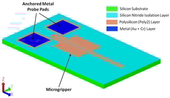 - Cauchi, M.; Mollicone, P.; Grech, I.; Mallia, B.; Sammut, N. Design and analysis of a MEMS-based electrothermal microgripper. Proceedings of International CAE Conference 2016, Parma, Italy, 17–18 October 2016. [Google Scholar]