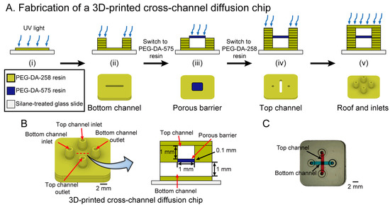 3.2. Fabrication of a 3D-Printed Cross-Channel Diffusion Chip