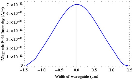 Figure 8 shows the magnetic field (H-field) intensity of SOI waveguide which is confined within the core region of waveguide. With the help of Figure 8, mode field diameter (MFD) is found out to be 1.774 µm for 0.5 µm, waveguide width. Since MFD and width of the waveguide are of similar dimensions indicating very good optical mode confinement.