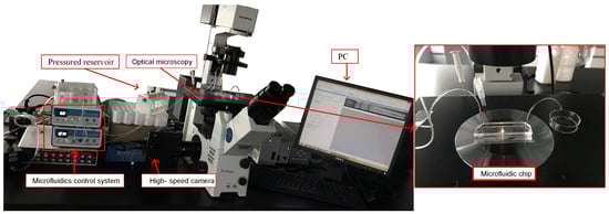 where L, w, and h are the length, width and height of the channel, and is the kinetic viscosity of the solution. In the semi-3D flow-focusing device, R of dispersed phase is Pa·s·m, and the sum of R of the orifice and downstream channel is Pa·s·m. The difference between the two R leads to a significant suppression for the retraction motions of the dispersed phase liquid cone, contributing to achieve the tip-streaming mode. The configuration of the experimental system is shown in Figure 2.