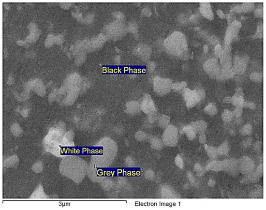 To observe the microstructure and subsurface quality of RSA 905, samples were prepared for cross sectional observation. The samples were cut to smaller pieces by wire EDM. The cross-sectional samples were then cold mounted with slow cure epoxy, followed by mechanical grinding and polishing up to 0.05 µm colloidal silica suspension. Then, an Ultra Plus Field-Emission Scanning Electron Microscope (FESEM) from Carl Zeiss was employed to characterize both the bulk’s microstructures and cross-sectional surfaces after the EDM and MFAF processes. For cross sections, secondary electron images using 10 kV accelerating voltage were taken near the transition zone where EDM and MFAF were performed. As shown in Figure 6, the microstructures of RSA 905 consist of ultra-fine grains of 100 nm to 1000 nm in size. From the secondary electron images, distinct white and grey phases were observed in the matrix of black phase.