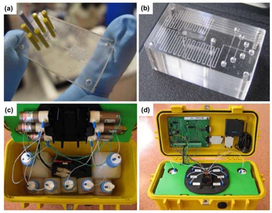- Cleary, J.; Maher, D.; Diamond, D. Development and deployment of a microfluidic platform for water quality monitoring. In Smart Sensors Real-Time Water Quality Monitoring; Springer: Berlin/Heidelberg, Germany, 2013; Volume 4, pp. 125–148. [Google Scholar]