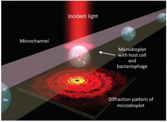 Schematic diagram of the optofluidic imaging based on microdroplets, co-cultured bacteriophage, and host cells (E. coli) [45].